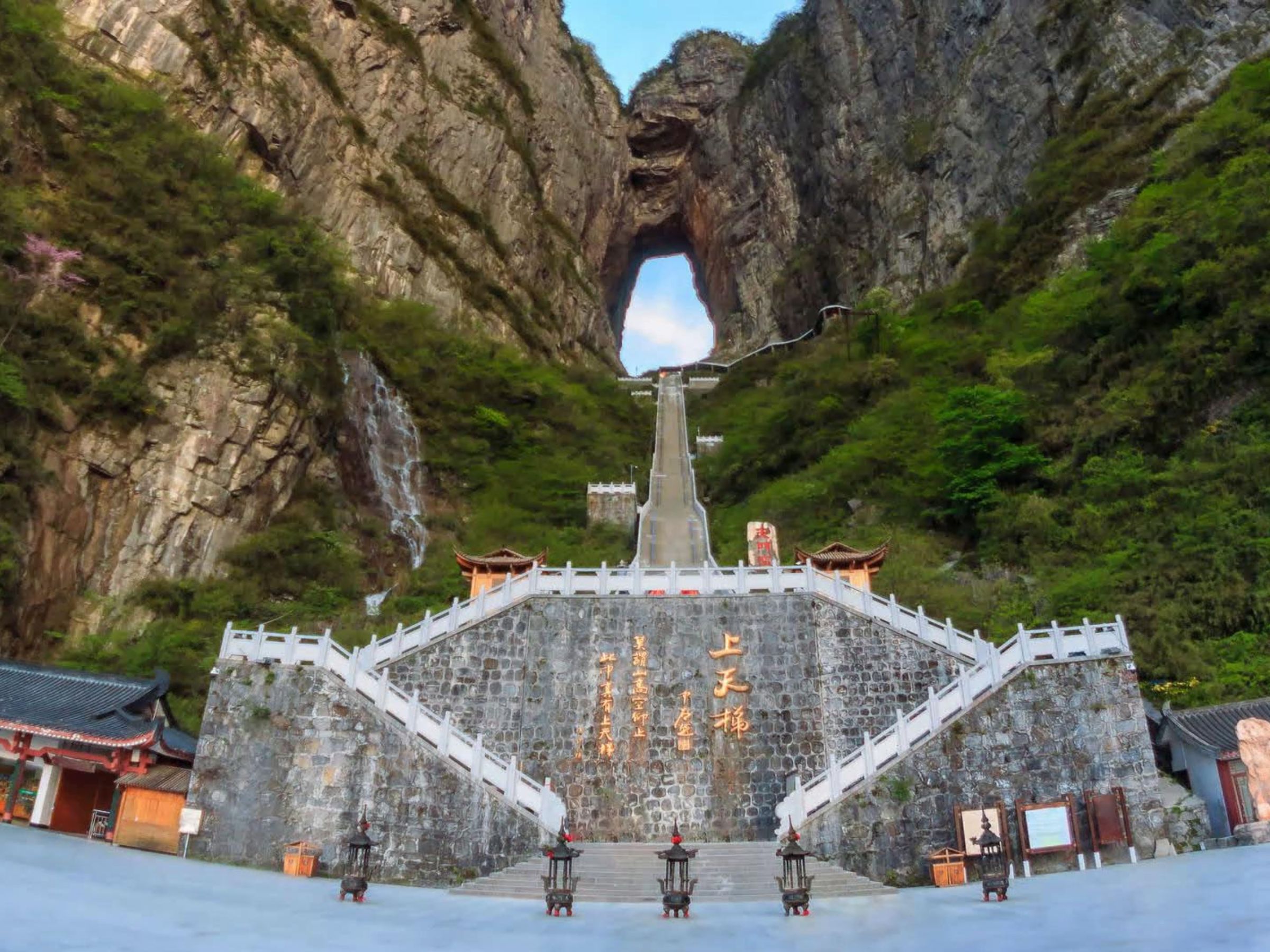 - Quý khách tự do tham quan, mua sắm hoặc có thể lựa chọn tham quan Cổng trời Thiên Môn Sơn (Chi phí tự túc) – Cổng trời tâm linh của người Trung Hoa nằm tại đỉnh núi Thiên Sơn, thuộc địa phận tỉnh Hồ Nam, Trung Quốc. Nơi đây nổi tiếng với khung cảnh núi non trùng điệp, hùng vĩ, đẹp như một bức tranh được vẽ lên bởi bàn tay thiên nhiên, được mệnh danh là Thiên Hạ Đệ Nhất Kỳ Sơn, và hành trình dài 11km qua 99 khúc cua đã trở thành điểm đặc biệt nhất trong hành trình chinh phục nơi đây. (Chi phí tự túc)